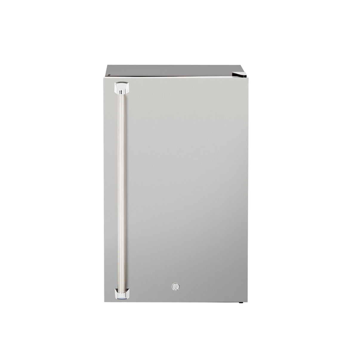The Elements stainless-steel outdoor built-in refrigerator contains up to 4.5 cubic feet of storage. This outdoor rated mini fridge will help keep your food fresh, wine chilled, and beer cold, bringing the function of your indoor refrigeration outside to join the party!