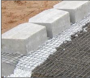 Mirafi Grid is an open mesh grid structure that is placed in horizontal layers to reinforce retaining walls that are 5ft or higher. The geogrid acts as a “tie-back” to resist the outward movement of the retained soil. The geogrid holds the soil in place to allow the retaining wall to function, when building taller walls, the retained soil begins to exert enough outward force in the wall to push over the concrete blocks causing wall failure. A properly designed wall with Mirafi grid as the reinforcement, will reduce this outward pressure allowing the wall to function as desired.